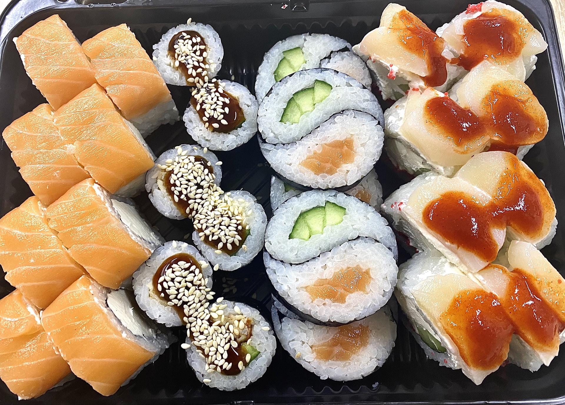 Состав:Ролл Филадельфия ЛайтМаки ролл с УгремРолл Инь-ЯньРолл с морским гребешком "Жемчужина